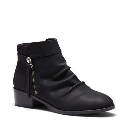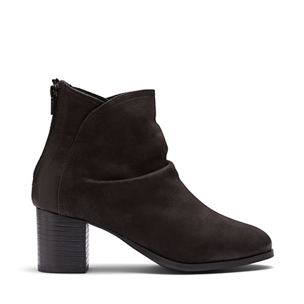 Scrunch details on the upper give Neecy a stunning casual vibe that can be dressed up or down. Featuring a high leather stacked, block heel and soft Nubuck leather finish, this ankle boot will polish any outfit. Leather Upper, Synthetic Lining and Outsole. Heel Height: 5.5cm