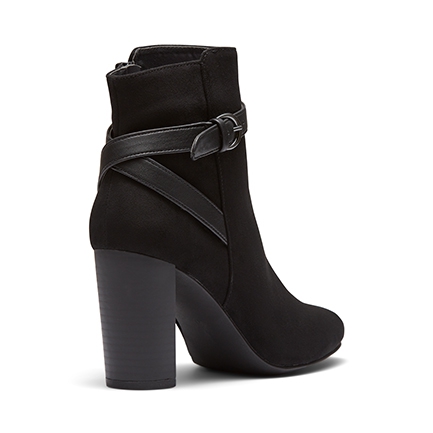 Kassandro is sleek, sophisticated and oh so chic. Featuring a stacked block heel, soft microsuede finish with contrast strap and metallic buckle detail, this ankle boot is a desk to dinner favourite. Synthetic Upper, Lining and Outsole. Heel Height: 8cm