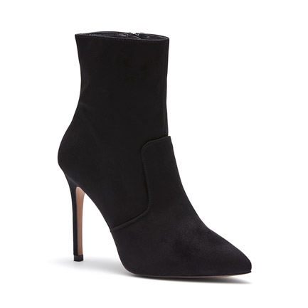 Simplistic and sexy, Karra is a gorgeous ankle boot with a high stiletto heel and on-trend pointed toe profile. A soft microsuede finish will make this style your best friend for a night out this Winter. Synthetic Upper, Lining and Outsole. Heel Height: 10cm