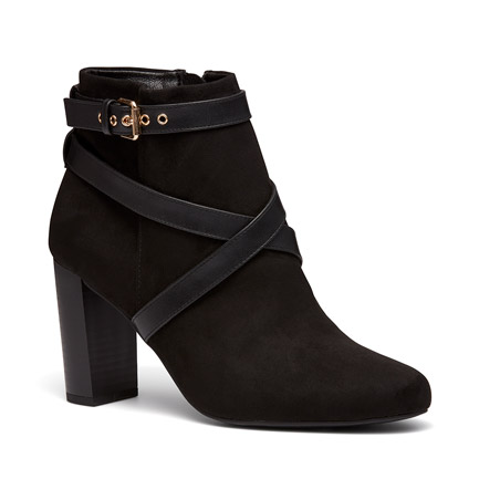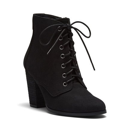 Utility meets style this season with Discovery. This ankle boot has a little something extra with a sturdy block heel, lace-up detail with contrast straps and shiny metallic hardware. Synthetic Upper, Lining and Outsole. Heel Height: 9cm