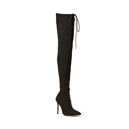 Make a statement this Winter with OTK boot Likely. This years over-the-knee styling is more fashion forward than ever with pointed toe profile, sturdy block heel and lace at the opening so you can choose just how skin tight you want it to be. Synthetic Upper, Lining and Outsole. Heel Height: 8cm