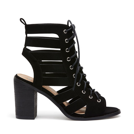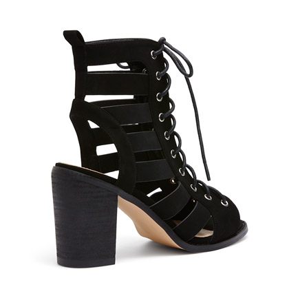 Get ready to up your fashion game in these lace-up block heels. The open toe and heel add extra interest, while the pull tab makes it easier for you to slip these beauties on and go. Synthetic Upper, Lining and Outsole. Heel Height: 8cm.
