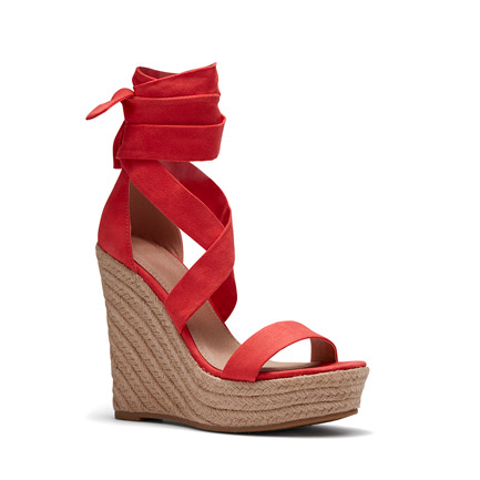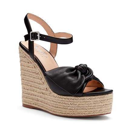 These wedges add height and structure to anchor any outfit. They feature a twist knot upper in smooth (Black / Nude) or suede (Red) leather which is offset with a rope textured wedge platform. Leather Upper, Lining and Synthetic Outsole. Platform Height: 4.5cm. Heel Height: 13cm