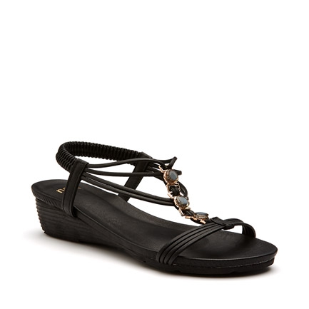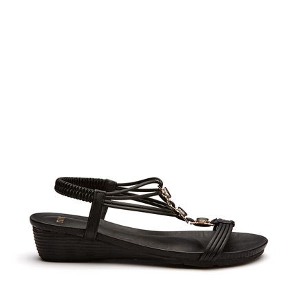 Make the summer mood last in the gorgeous Bren Sandals. A casual favourite to take you from day to night, these summer holiday favourites feature multi-strap detailing with glittery bead and metallic hardware embellishment. They're fitted with a scrunch elasticated loop ankle strap and sit on a slight wedge heel. Synthetic Upper, Lining and Outsole. Heel Height: 4cm
