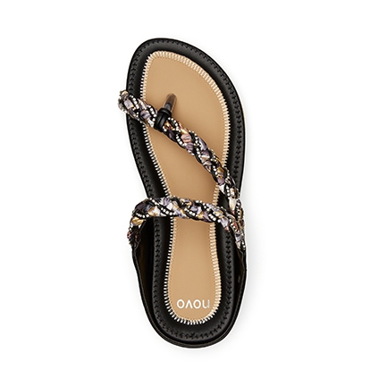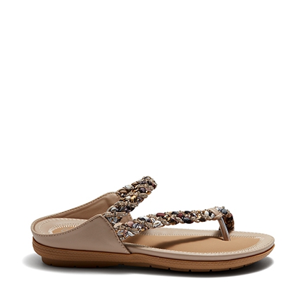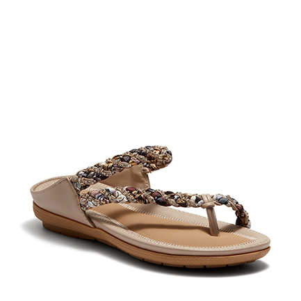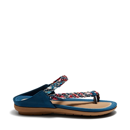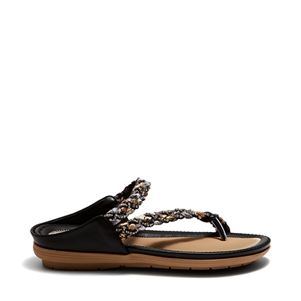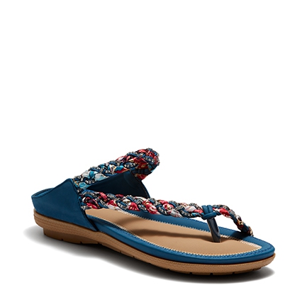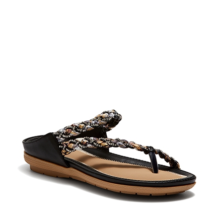 The sophisticated sandal statement for summer. These day to night favourites are made for comfort and eye-catching style. A leather-look fabrication meets a woven scarf fabric and diamante crystal studded strap across the upper. These backless sandals have a soft moulded footbed rubber sole. Synthetic Upper, Lining and Outsole.