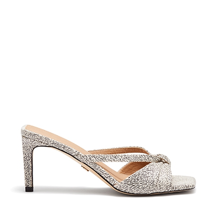 Presenting Novo's limited edition, online exclusive collection for a daring, unique and one of a kind look. The Zyra mules feature a stunning knotted upper, bold square toe and directional heel. Synthetic Upper, Lining and Outsole. Heel Height: 7cm.